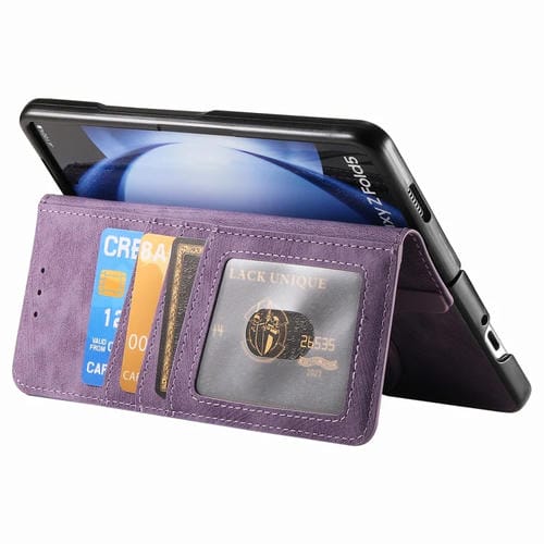 Funda para Samsung Galaxy Z Fold5 5G Cuero Retro con Billetera y Cremallera Magnética (Púrpura)