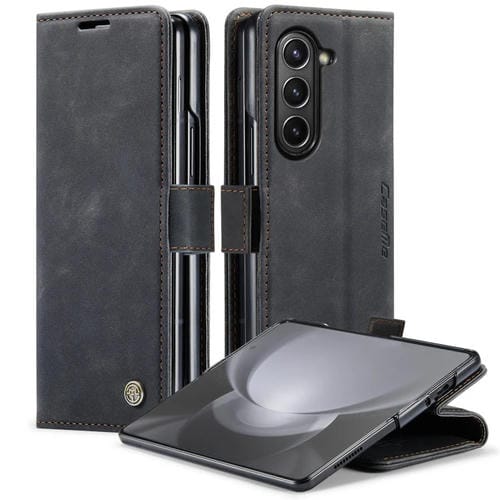 Estuche para Teléfono Samsung Galaxy Z Fold5 Caseme-013 Cuero Esmerilado Retro Multifuncional (Negro)