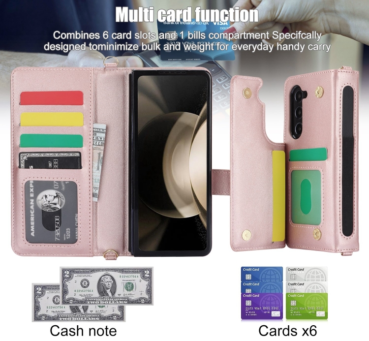Estuche para Teléfono Samsung Galaxy Z Fold5 Crossbody Cuero Rómbico Multifunción (Oro Rosa)