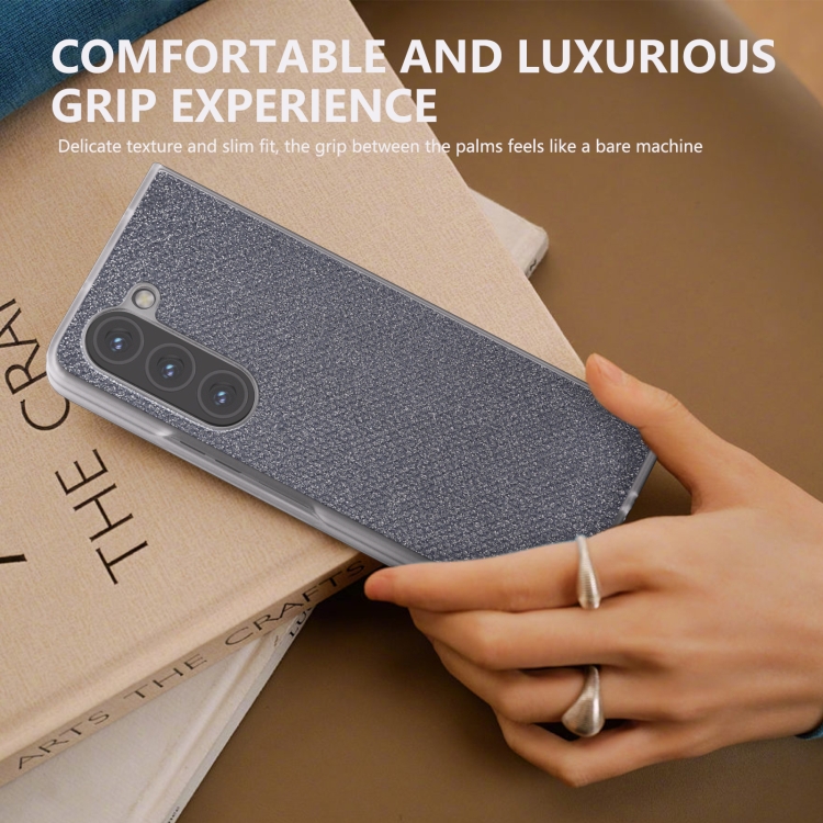 Estuche para teléfono Samsung Galaxy Z Fold5 con borde transparente esmerilado y diamante (Negro)