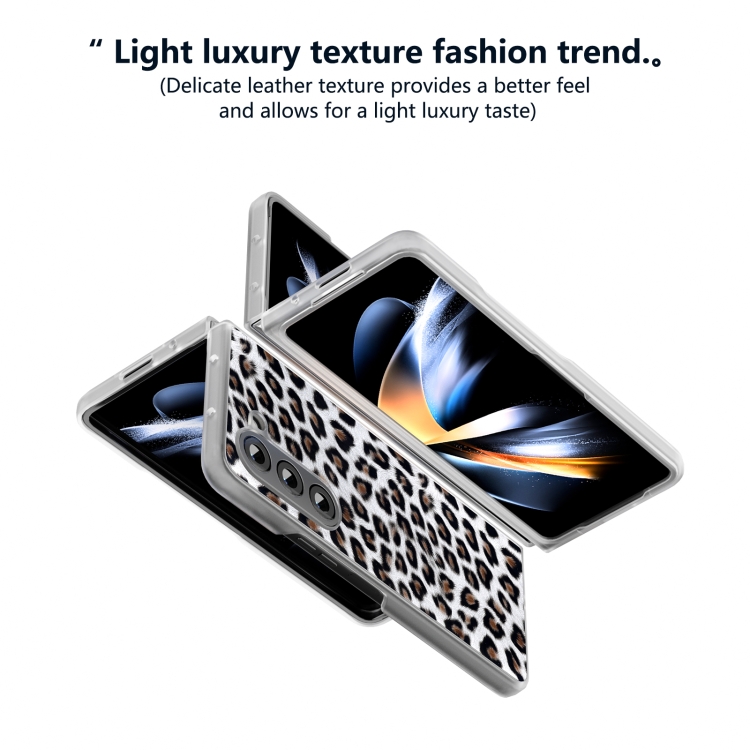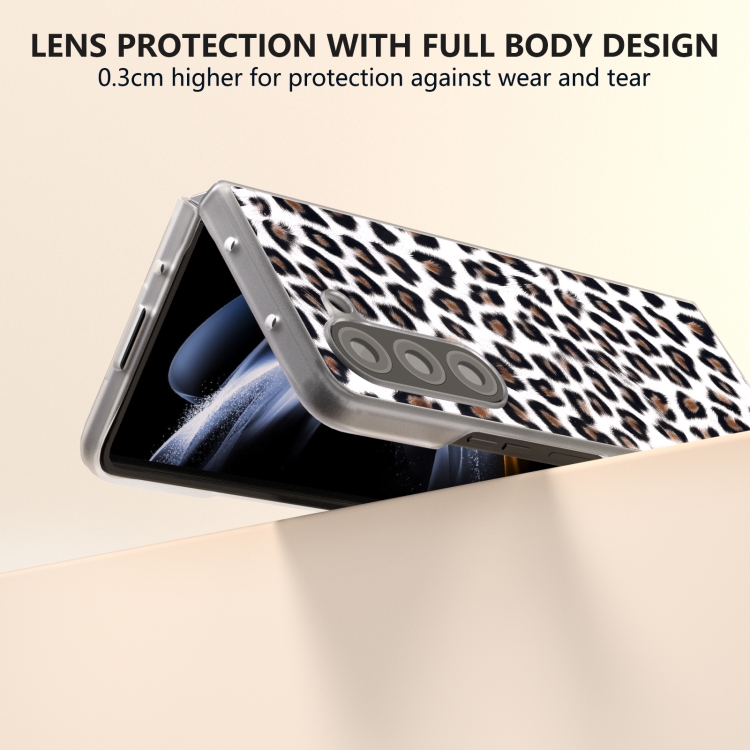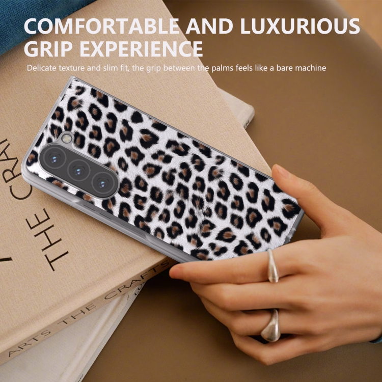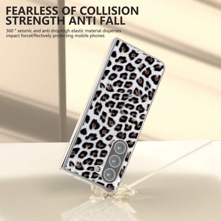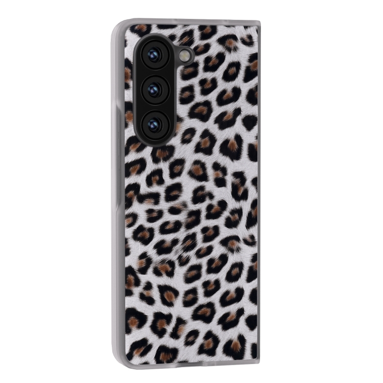 Estuche para Teléfono Samsung Galaxy Z Fold5 Estampado de Leopardo Borde Transparente Esmerilado (Plateado)