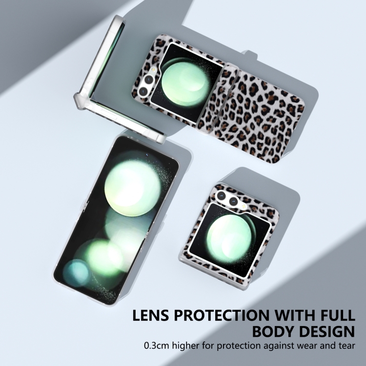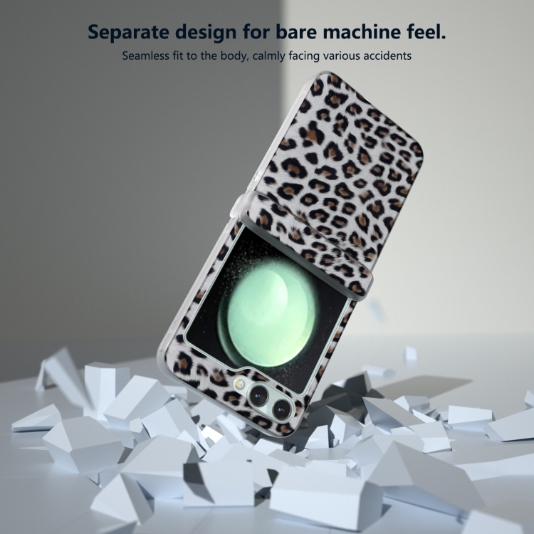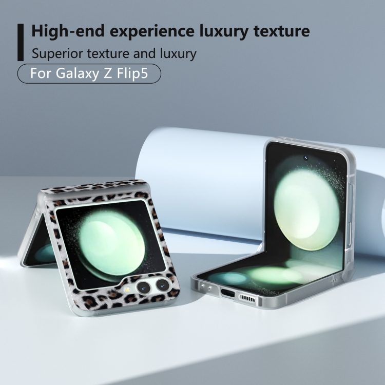 Estuche para teléfono Samsung Galaxy Z Fold5 marco transparente esmerilado tres partes patrón leopardo (Leopardo Plateado)