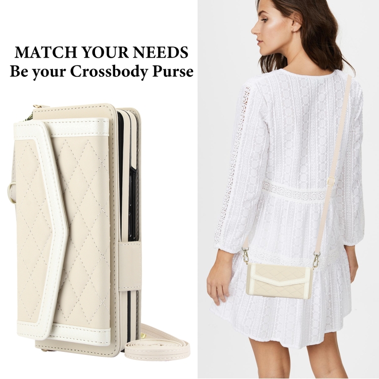 Estuche para Teléfono Samsung Galaxy Z Fold5 con Tarjetero Textura Rómbica y Empalme con Cordón (Beige)