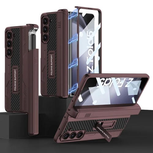 Estuche para teléfono Samsung Galaxy Z Fold5 Gkk con carcasa mecánica plegable integrada y caja de lápiz deslizante (Rojo Vino)