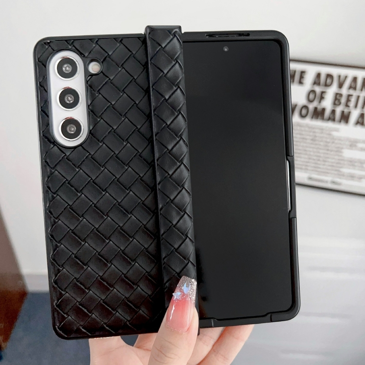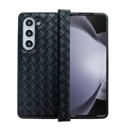 Funda para Teléfono Samsung Galaxy Z Fold5 Juego de Tres Piezas PU Plegable con Textura Tejida (Negro)