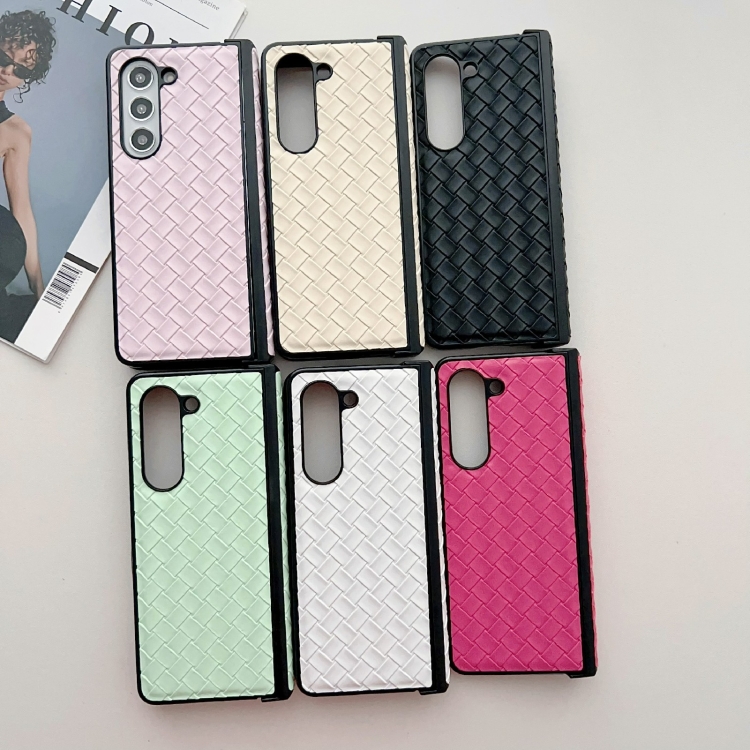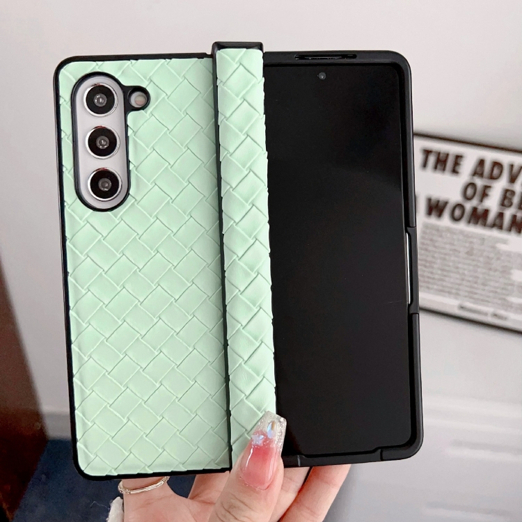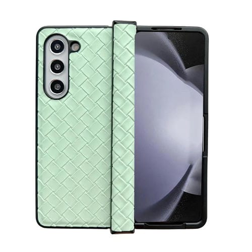 Funda plegable para Samsung Galaxy Z Fold5 con textura tejida de PU (Verde) juego de tres piezas