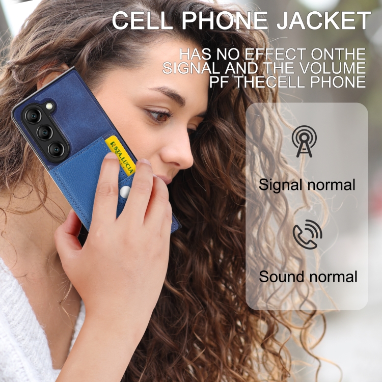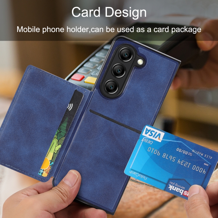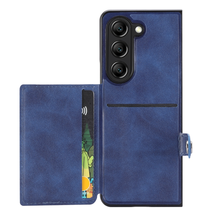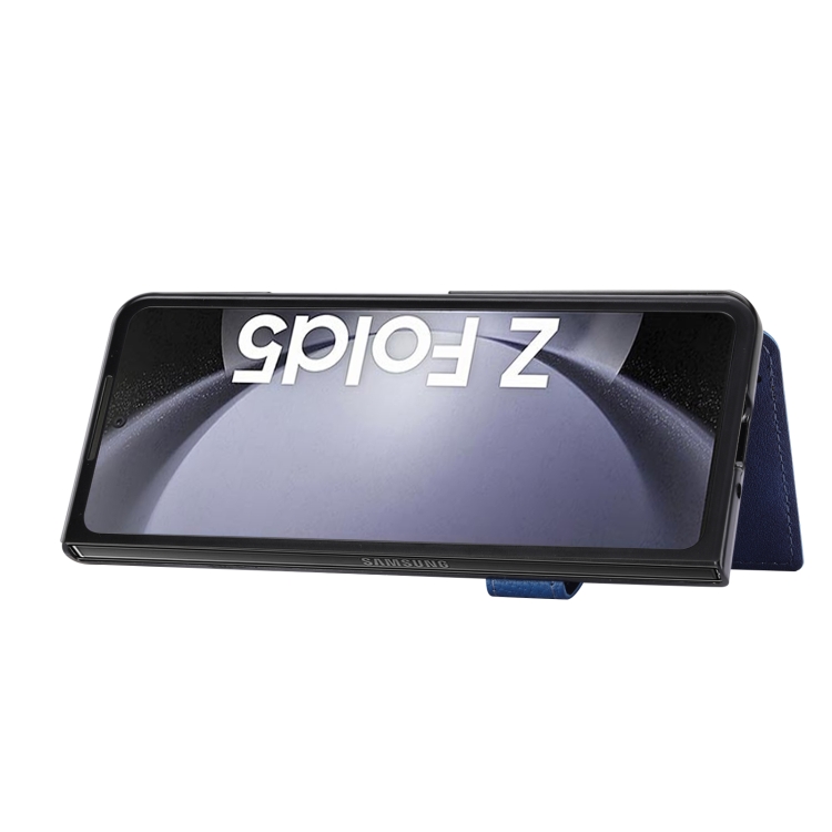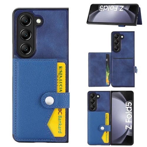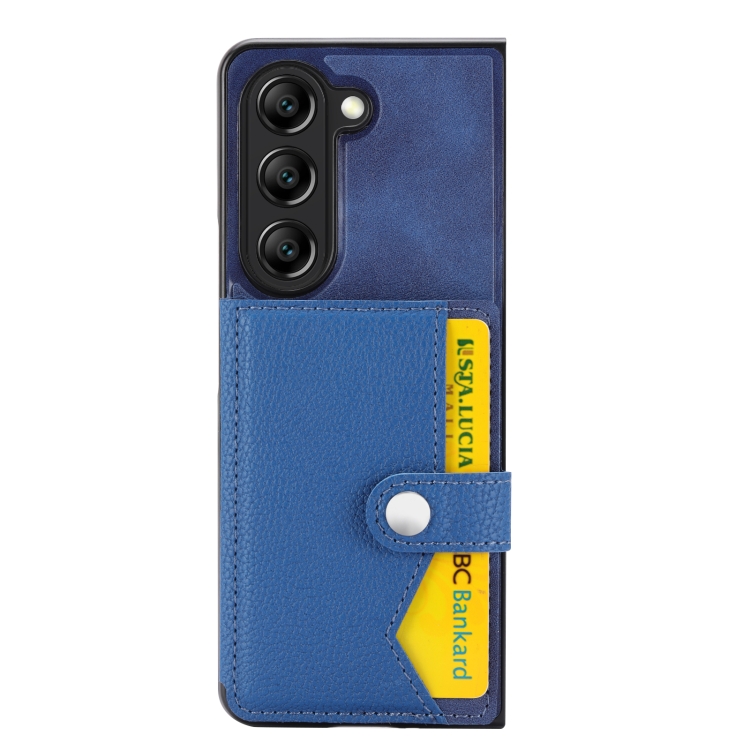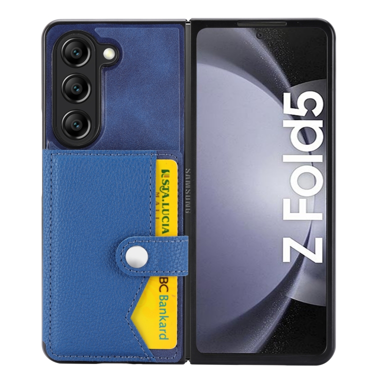 Funda para teléfono Samsung Galaxy Z Fold5 Litchi Pattern con tarjetero de un solo botón (Azul)