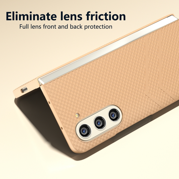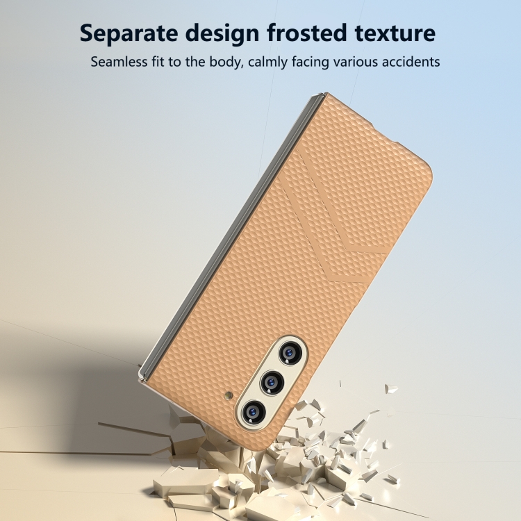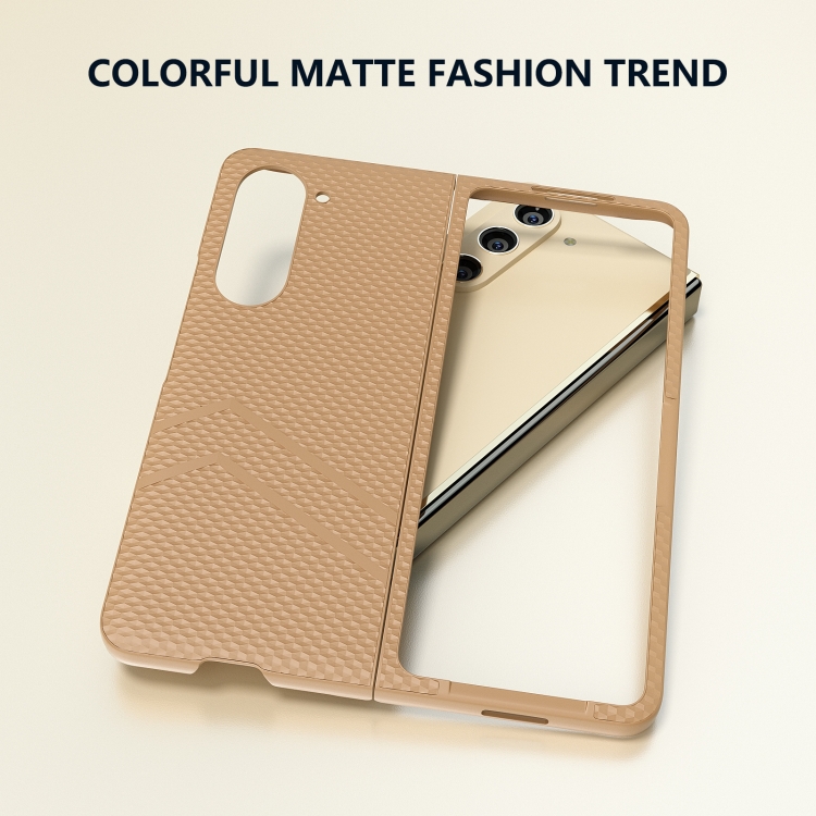 Estuche para Teléfono Samsung Galaxy Z Fold5 PC a Prueba de Golpes con Pintura de Diamante y Textura Esmerilada (Marrón)