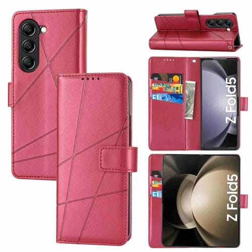 Funda para Teléfono Samsung Galaxy Z Fold5 PU con Línea en Relieve Textura Cuero Genuino (Rojo)