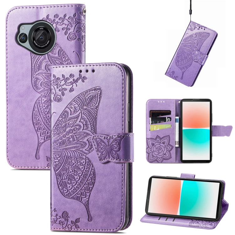 Estuche para Sharp Aquos R8 Butterfly Love Flower en Cuero En Relieve (Lavanda)