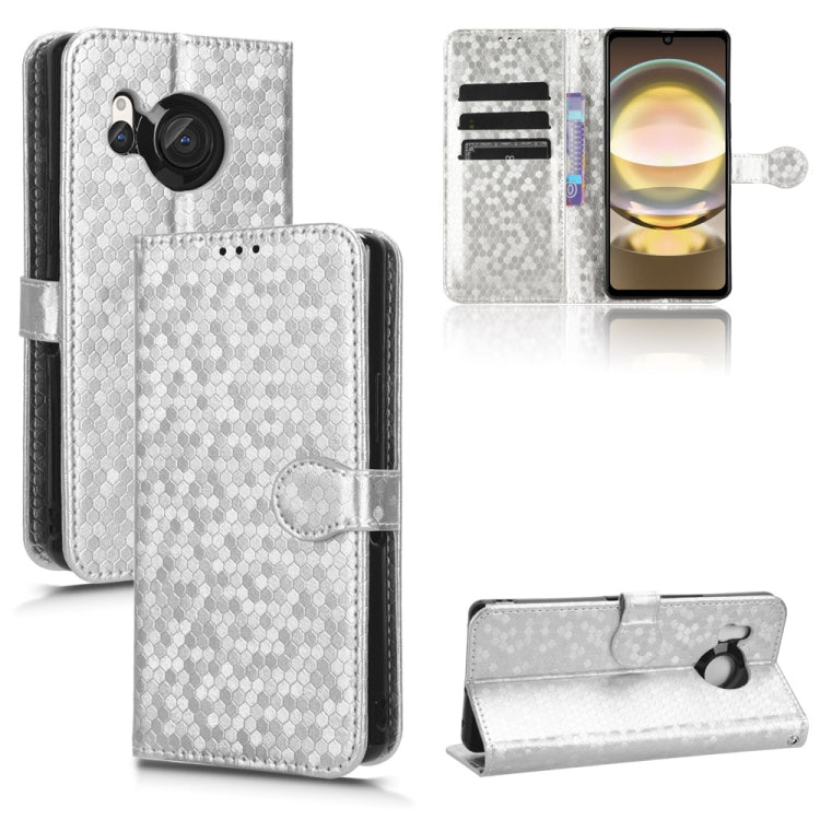 Funda de Cuero para Sharp Aquos R8 Honeycomb Dot Texture (Plata)