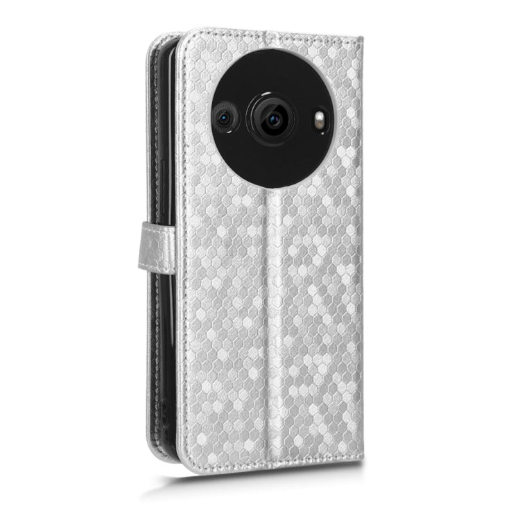 Funda de Cuero para Sharp Aquos R8 Pro con Textura Honeycomb Dot (Plata)
