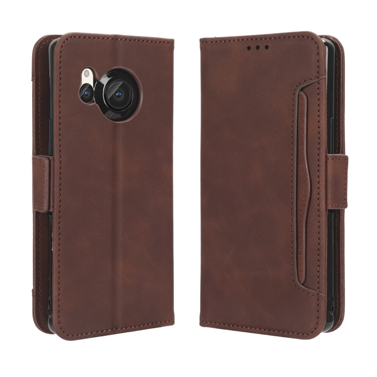 Funda de Cuero para Sharp Aquos R8 con Textura Becerro y Ranuras para Tarjetas (Marrón)