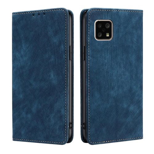 Funda para Sharp Aquos Sense 4 4G y Sense 4 5G con Rfid Cepillo Antirrobo Caja de Cuero Magnético (Azul)