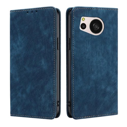 Estuche para teléfono Sharp Aquos Sense8 de cuero magnético con cepillo antirrobo RFID (Azul)