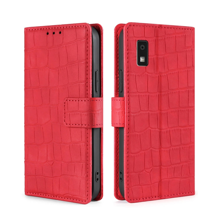 Funda de Cuero para Sharp Aquos Wish 3 con Skin Feel Cocodrilo y Cierre Magnético (Rojo)