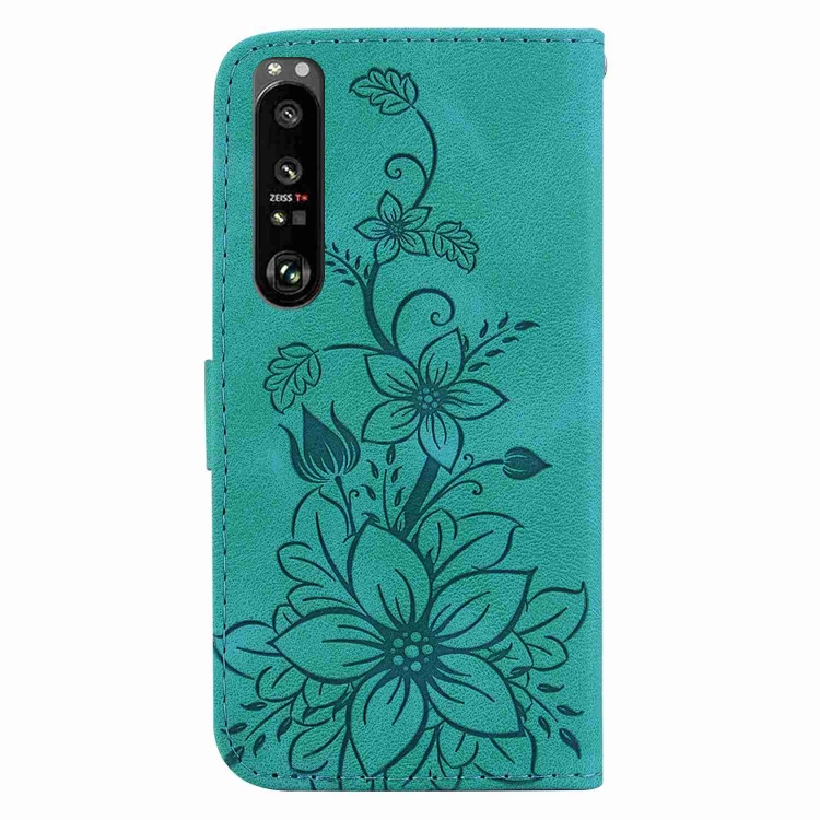 Funda de Cuero para Sony Xperia 1 III Lily en Relieve (Verde)