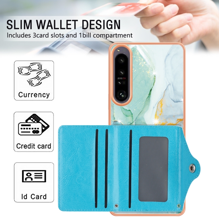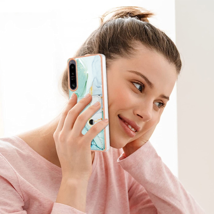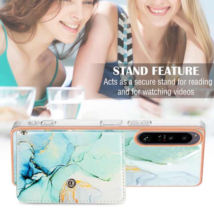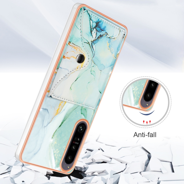 Estuche para Sony Xperia 1 IV con Ranura para Tarjeta y Patrón de Mármol (Verde)