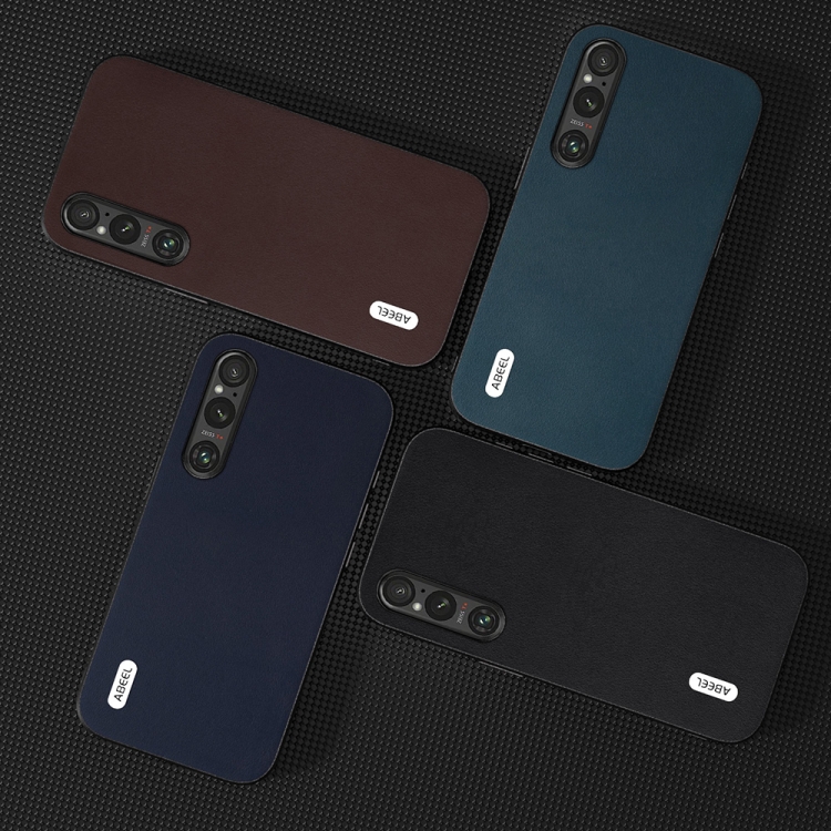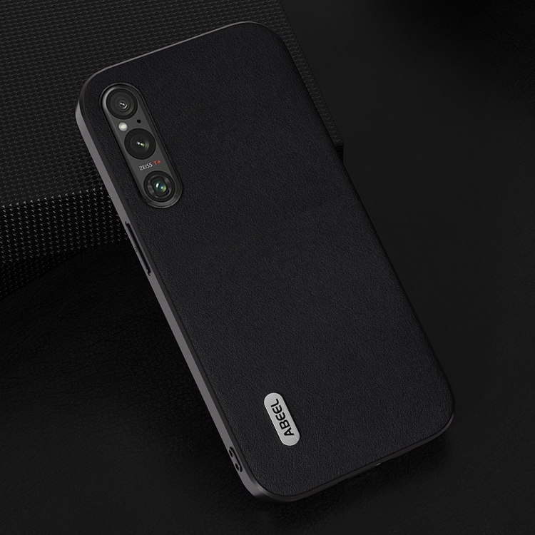 Funda para Sony Xperia 1 V Abeel Serie Xiaoya Cuero Genuino (Negro)