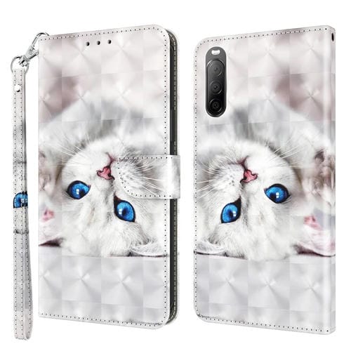 Funda de Cuero 3D para Sony Xperia 10 II (Gato Blanco Reflejo)