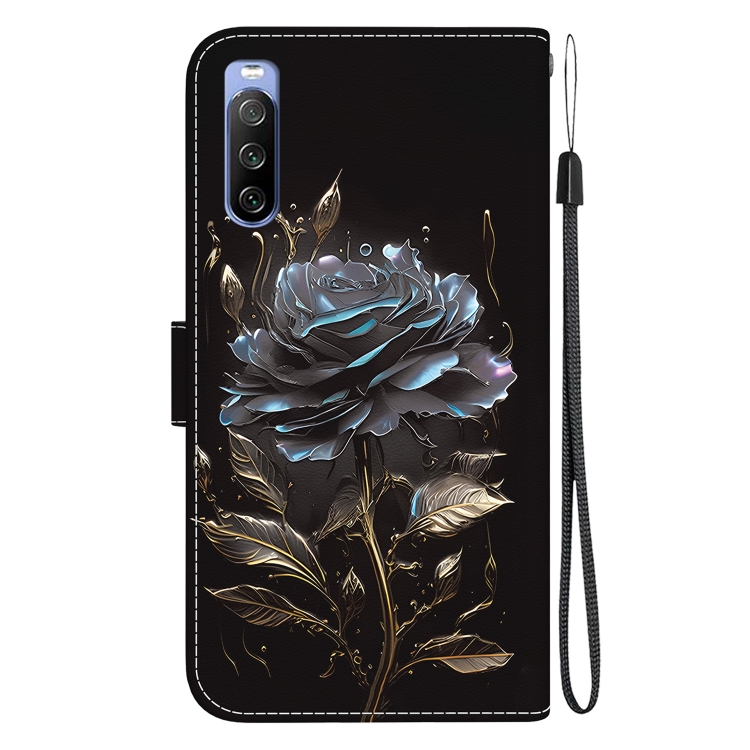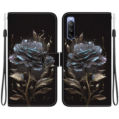 Estuche para Sony Xperia 10 III Cuero con Dibujo Coloreado y Textura de Cristal (Rosa Negra)