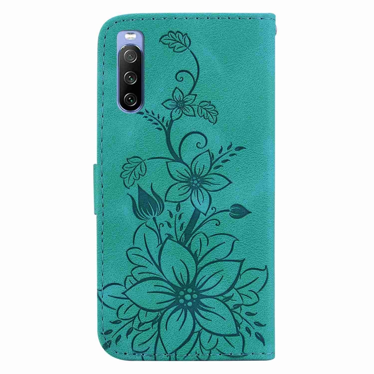 Funda de Cuero para Sony Xperia 10 III Lily En Relieve (Verde)
