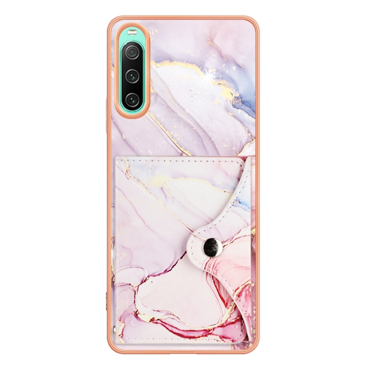 Estuche para Sony Xperia 10 IV con Ranura para Tarjeta y Patrón Mármol (Oro Rosa)