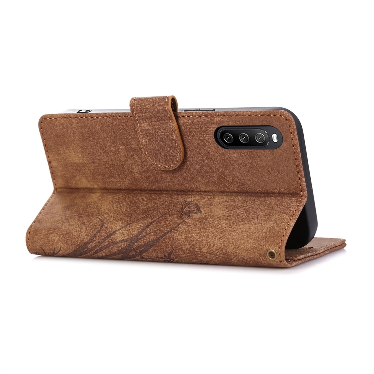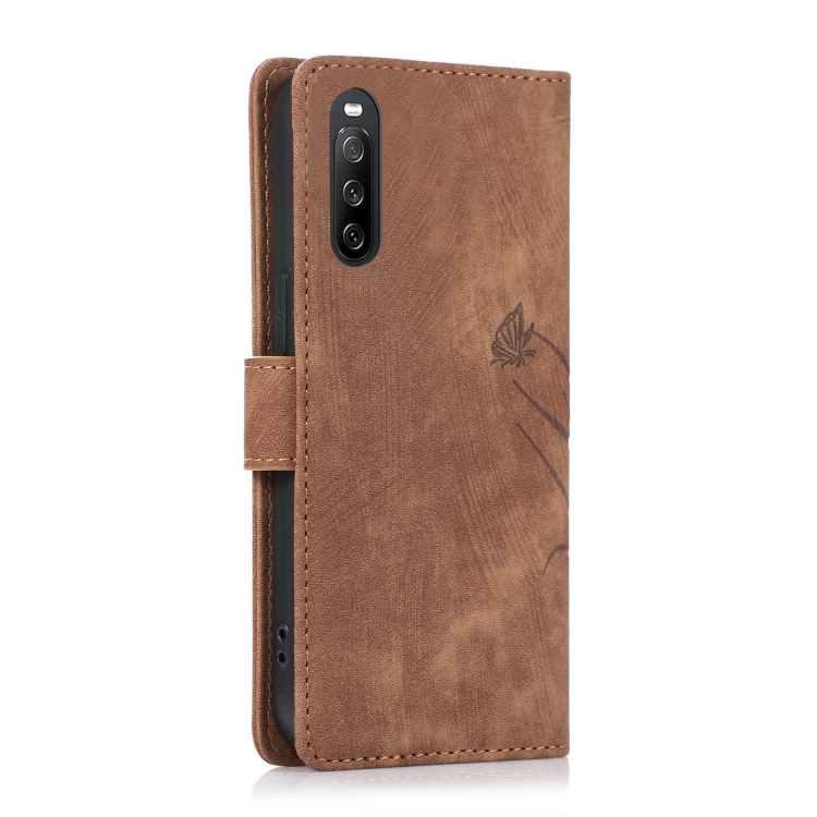 Funda para Sony Xperia 10 V 4G (2023) de Cuero con Relieve Mariposa Orquídea (Marrón)