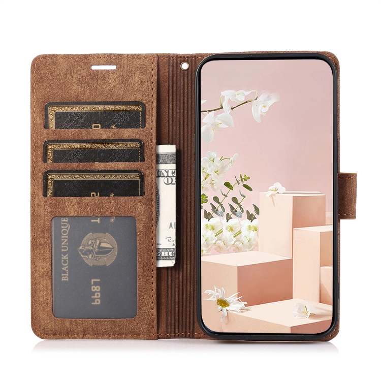 3. Estuche tipo billetera para tarjetas: combinación de una billetera y un estuche para teléfono celular, con ranuras para tarjetas de crédito de identificación, se puede usar como billetera para guardar varias tarjetas de crédito, efectivo, documentos de identidad y dinero.