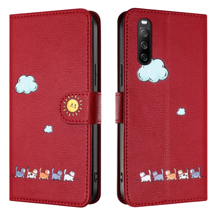 Funda de Cuero para Sony Xperia 10 V con Gatos de Dibujos Animados (Rojo)