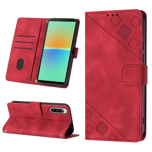 Estuche para Sony Xperia 10 V Skin-Feel de Cuero En Relieve (Rojo)