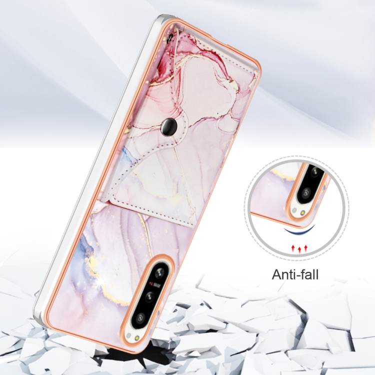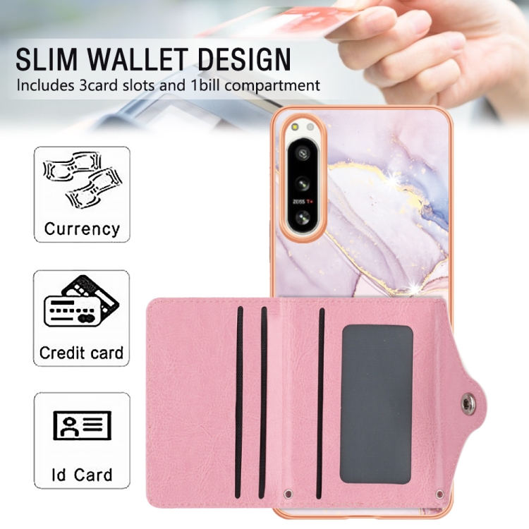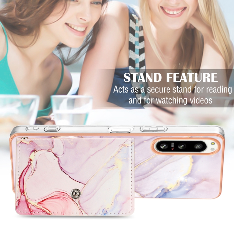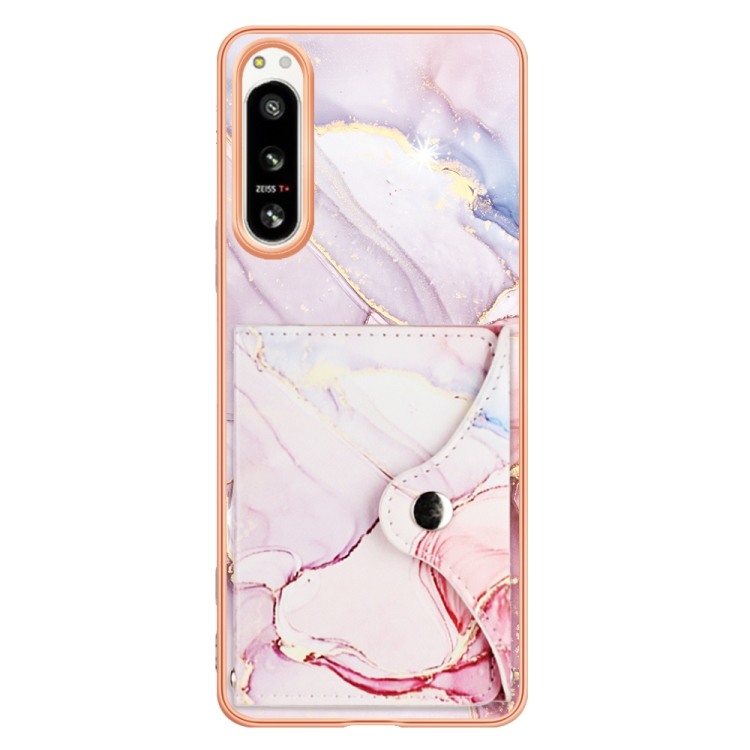 Estuche para Sony Xperia 5 IV con Ranura para Tarjeta y Patrón Mármol (Oro Rosa)