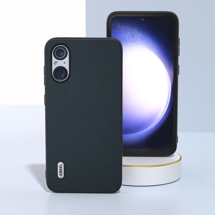 Funda para Sony Xperia 5 V Abeel con Borde Negro Ondulado de Cuero Genuino (Verde)