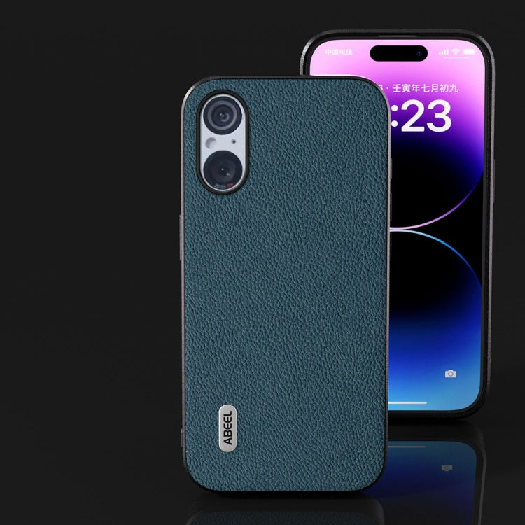 Funda para Sony Xperia 5 V Abeel Cuero Genuino Textura Litchi + PC (Verde)