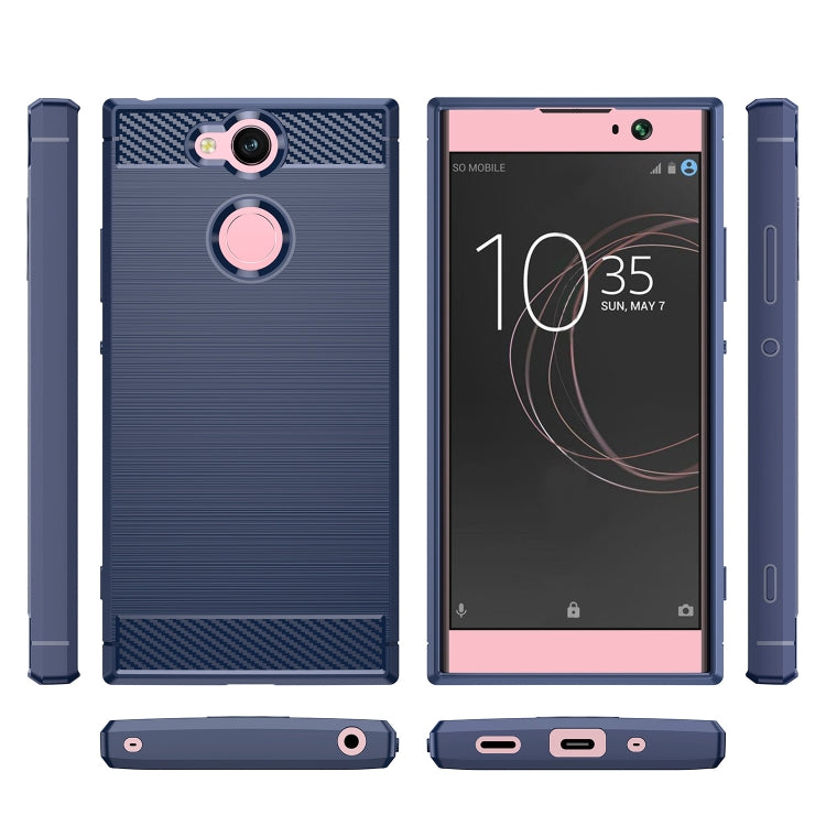 Funda Protectora para Sony Xperia Xa2 TPU Fibra de Carbono Textura Cepillada (Azul Marino)
