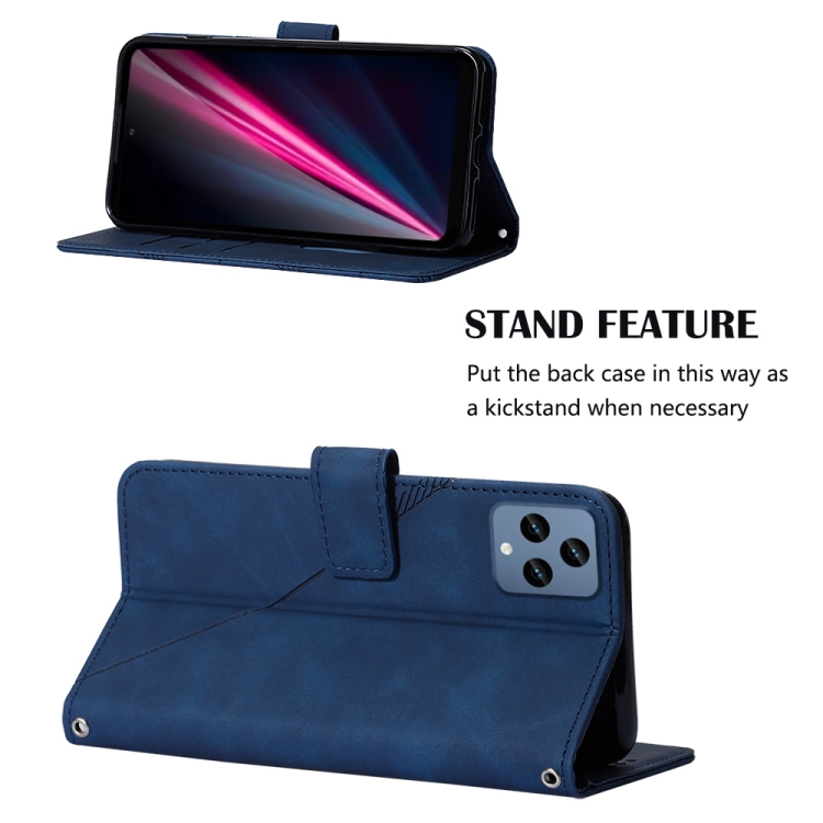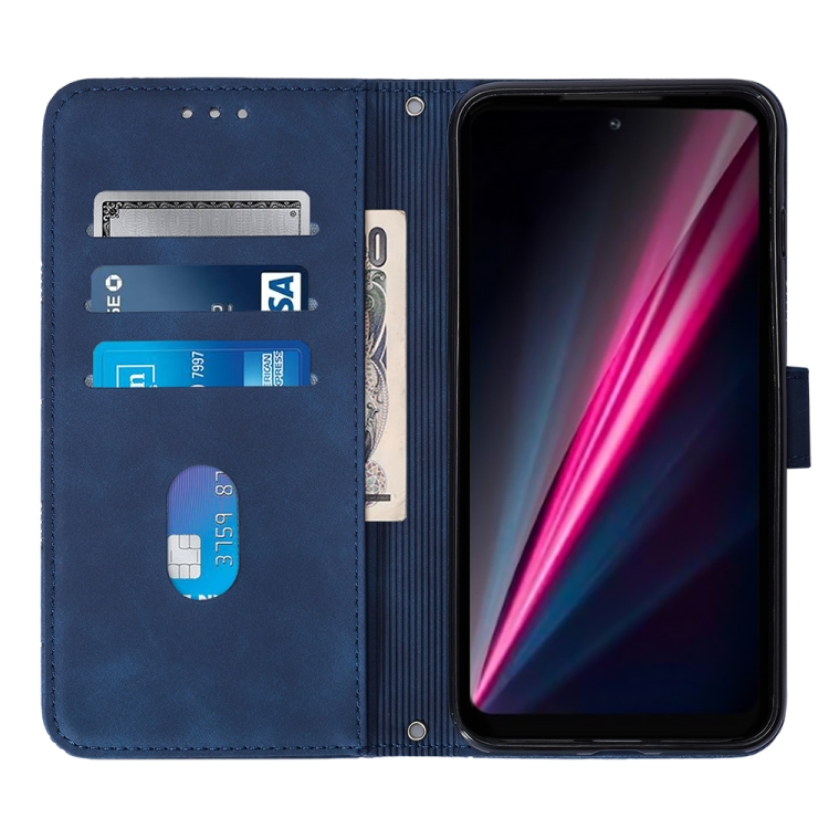 Funda de Cuero para T-Mobile Revvl 6 5G Crossbody 3D con Tapa En Relieve (Azul)