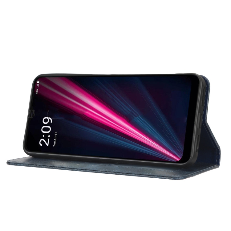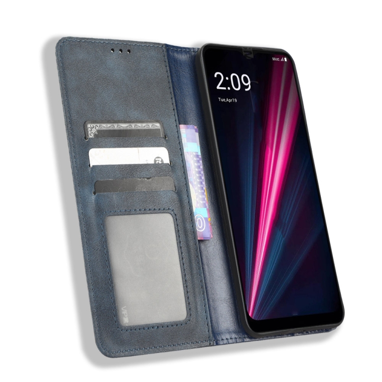 Funda de Cuero para T-Mobile Revvl 6 Pro 5G con Hebilla Magnética y Textura Retro (Azul)