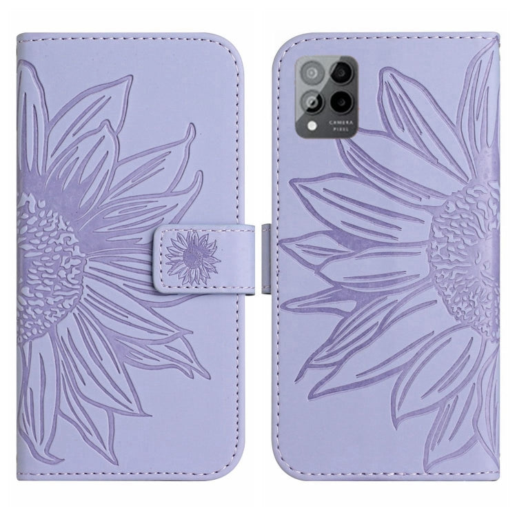 Funda Flip de Cuero para T-Mobile Revvl 6 Pro 5G con Cordón y Diseño Sun Flower (Púrpura)