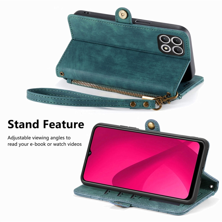 Funda de Cuero para T-Mobile Revvl 7 5G con Hebilla y Billetera Geométrica (Verde)