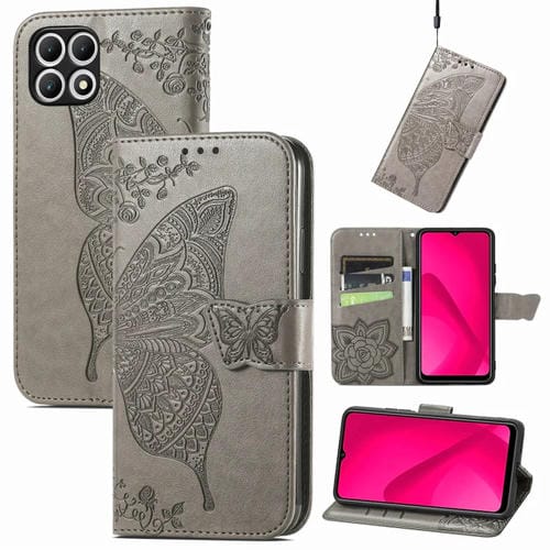 Funda para Teléfono T-Mobile Revvl 7 5G Cuero con Relieve Flor y Mariposa (Gris)