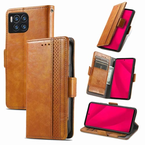Funda de Cuero Caseneo para T-Mobile Revvl 7 Pro 5G con Hebilla Magnética Dual (Caqui)