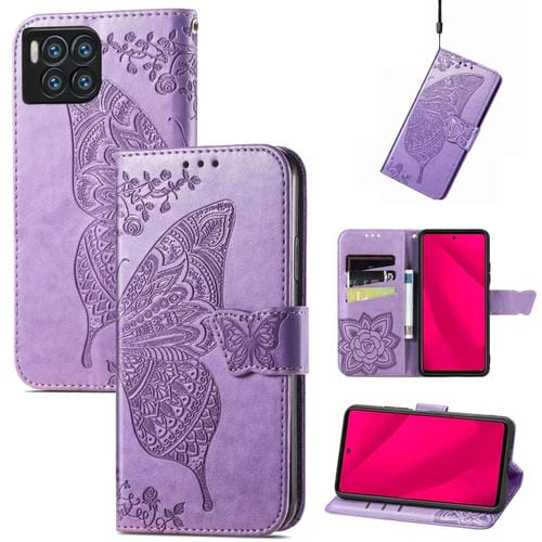 Funda para Teléfono T-Mobile Revvl 7 Pro 5G Cuero Relieve Flor de Amor y Mariposa (Púrpura Claro)