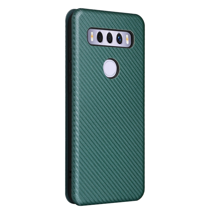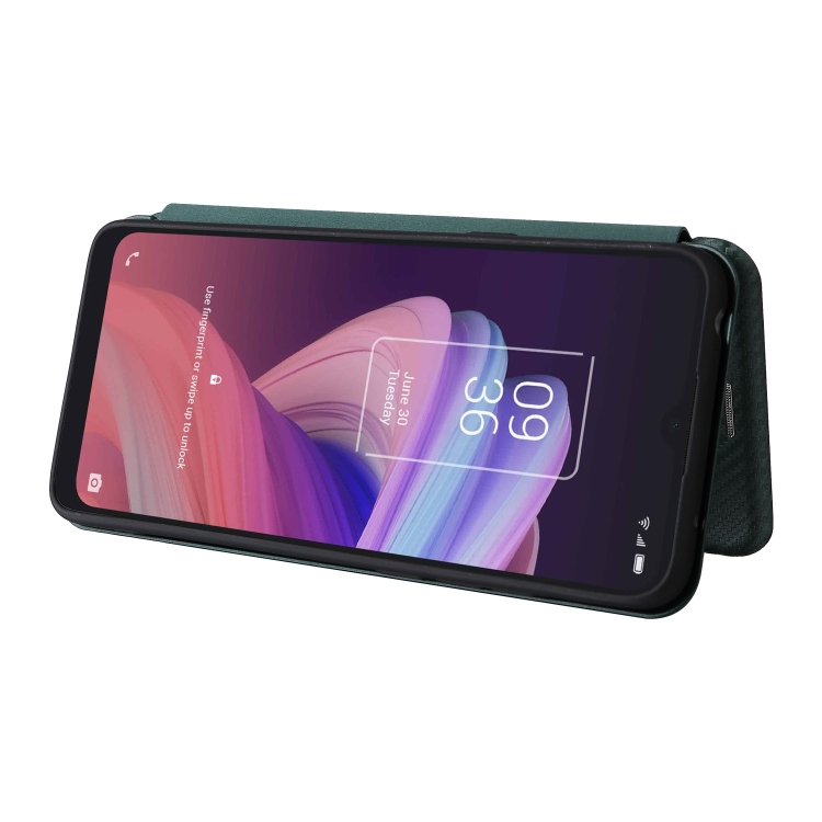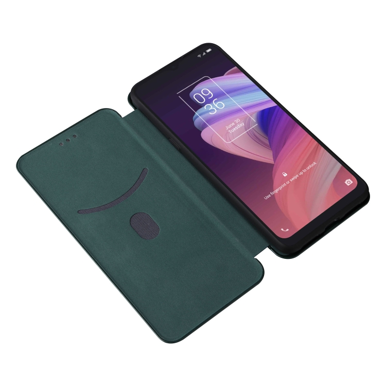 Funda para TCL 10 Se Carbon Texture magnética coche con ranura para tarjeta (Verde)