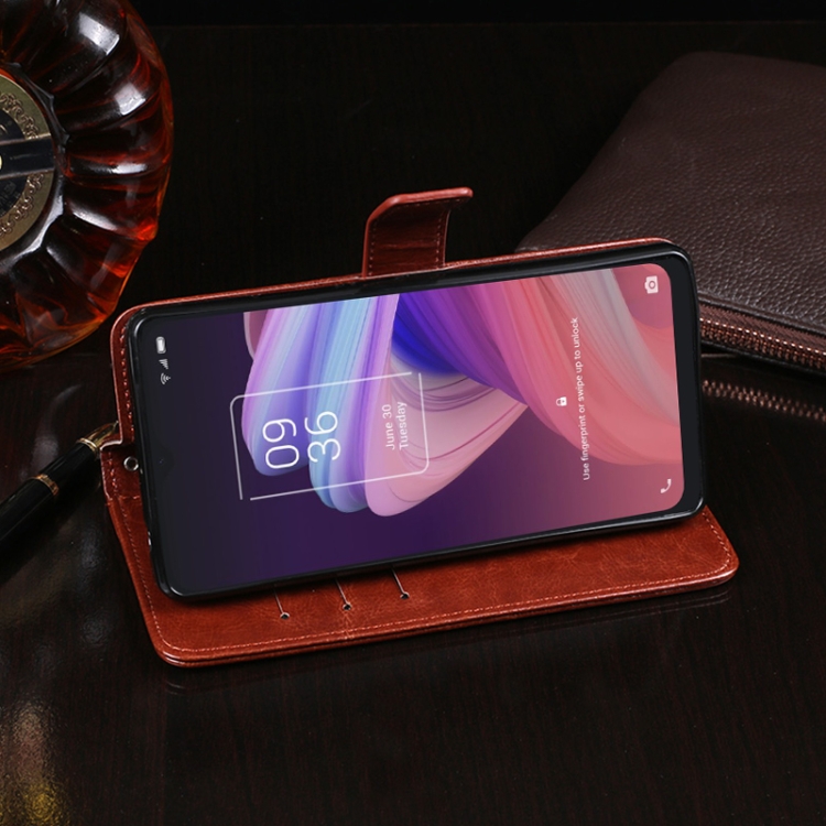 Funda de Cuero Idewei Crazy Horse para TCL 10 Se con Soporte, Tragamonedas y Billetera (Rose Rojo)