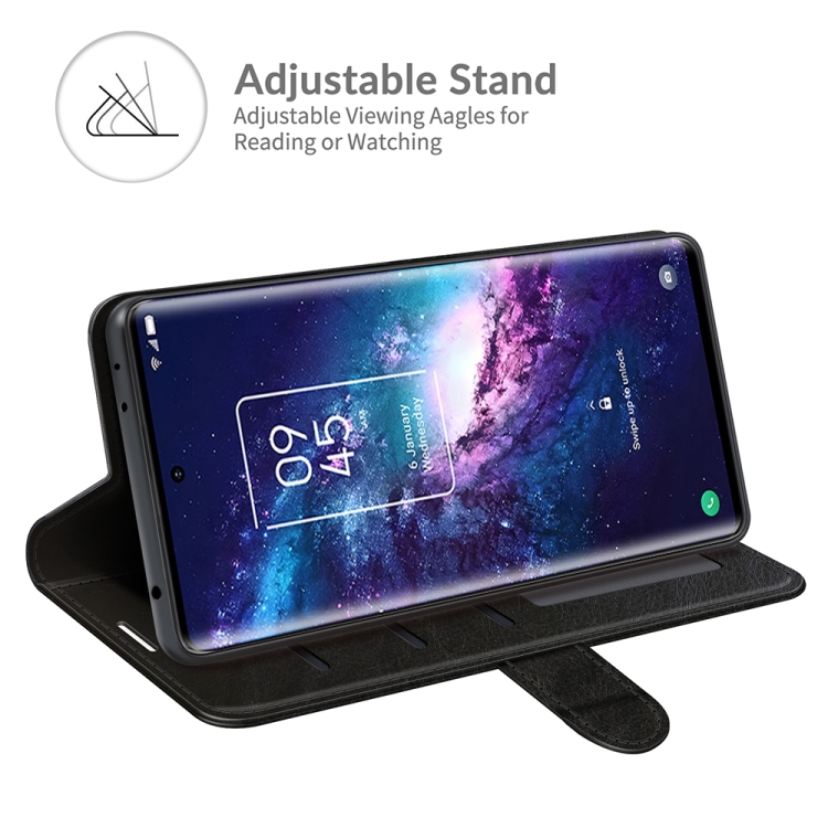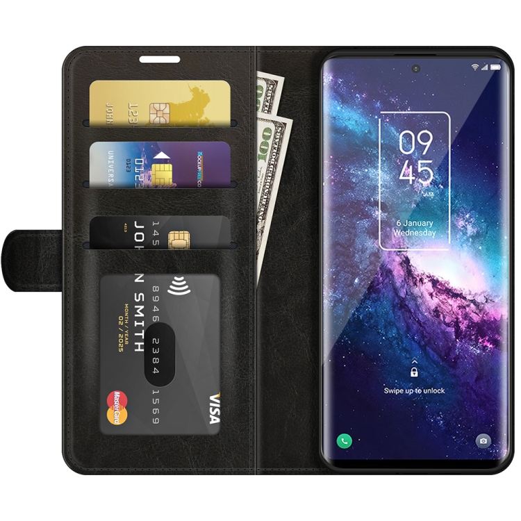 Funda Protectora Flip Horizontal para TCL 20 Pro 5G R64 con Soporte, Ranuras para Tarjetas y Marco de Fotografía (Negro)