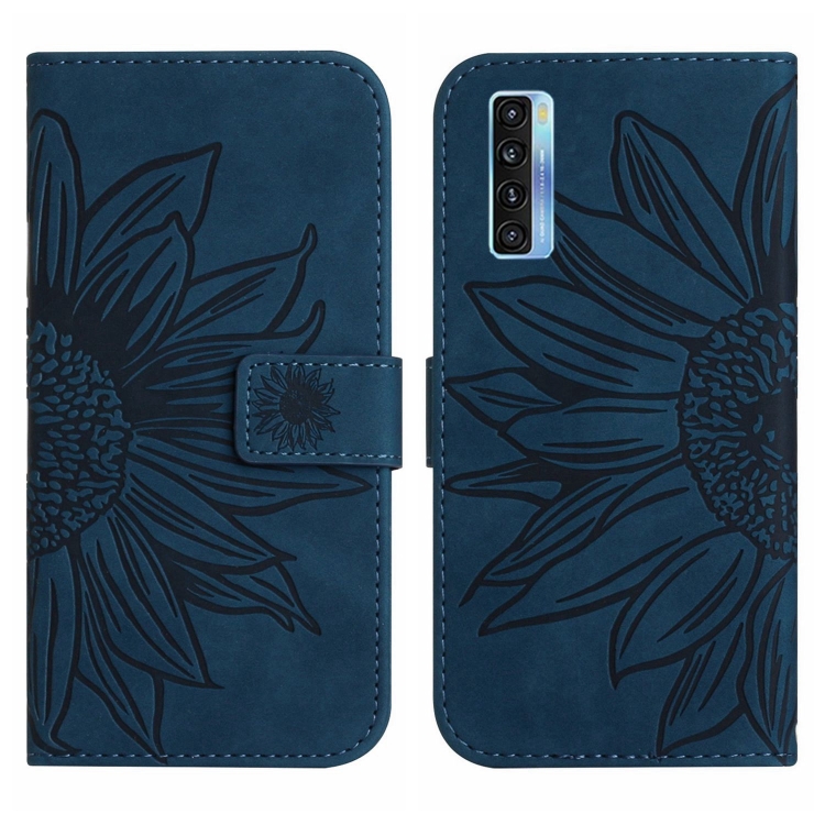 Funda Flip de Cuero para TCL 20 Pro 5G Skin Feel con Cordón y Patrón Sun Flower (Azul Tinta)