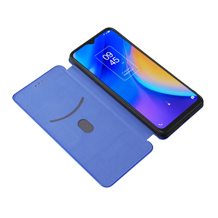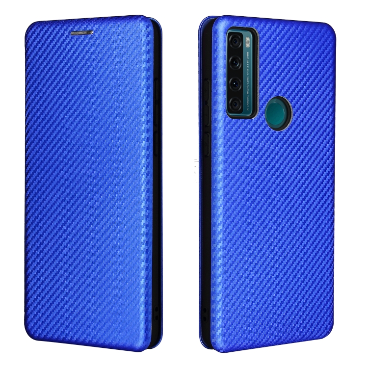 Funda para TCL 20 SE Textura Fibra de Carbono Magnético Horizontal Flip TPU + PC Cuero PU con Ranura (Azul)