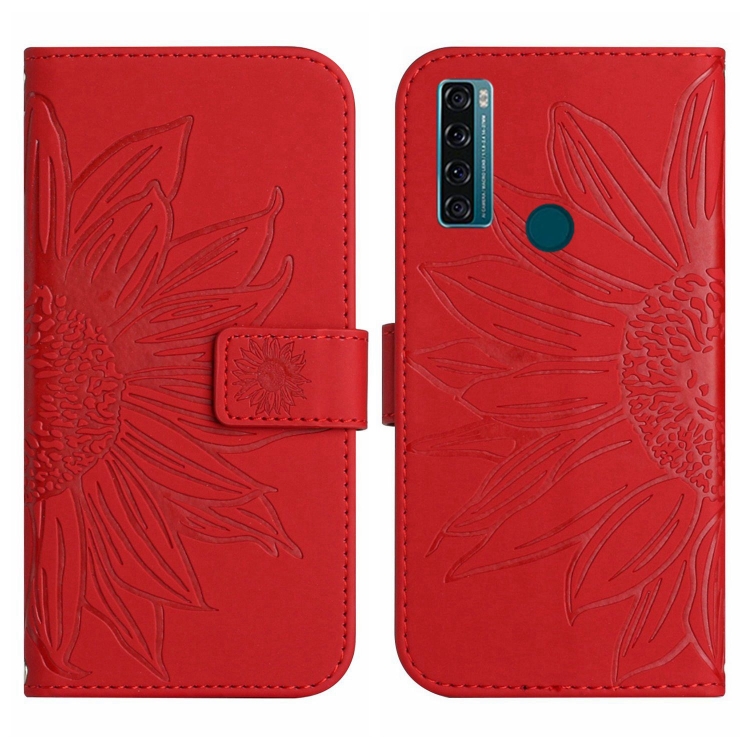Funda Flip de Cuero para TCL 20 Se Skin Feel con Cordón y Patrón Sun Flower (Rojo)