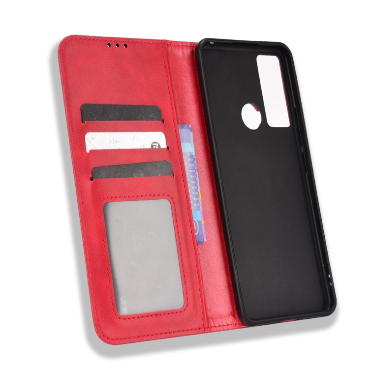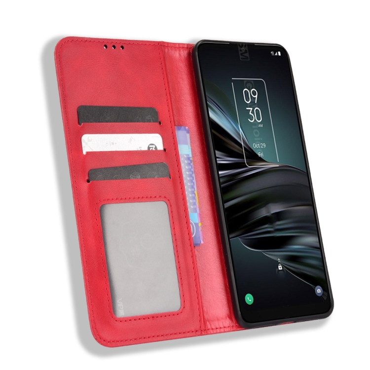 Funda para TCL 20 Xe con Hebilla Magnética de Cuero Textura Retro (Rojo)