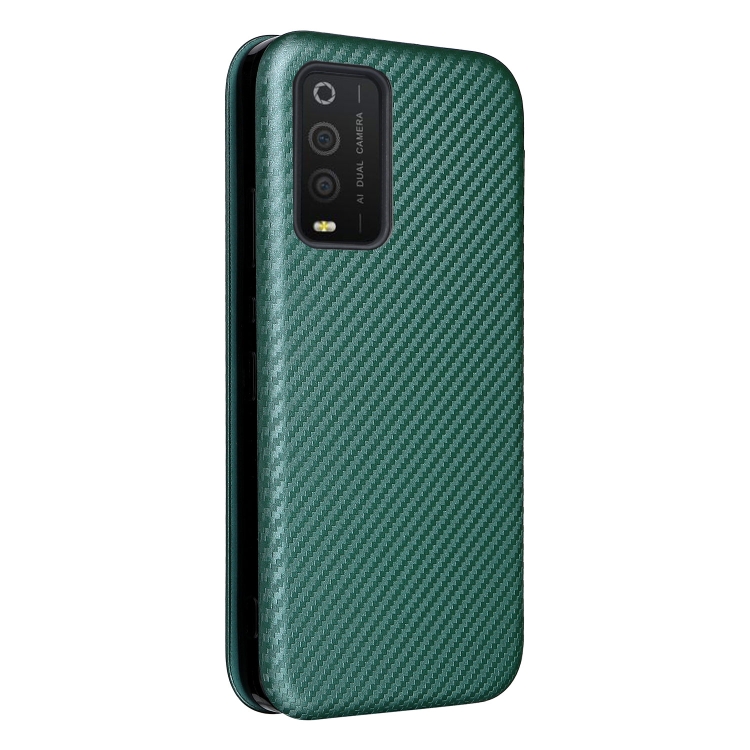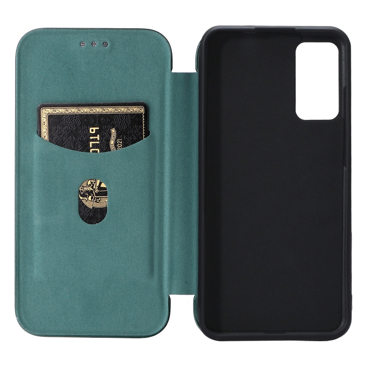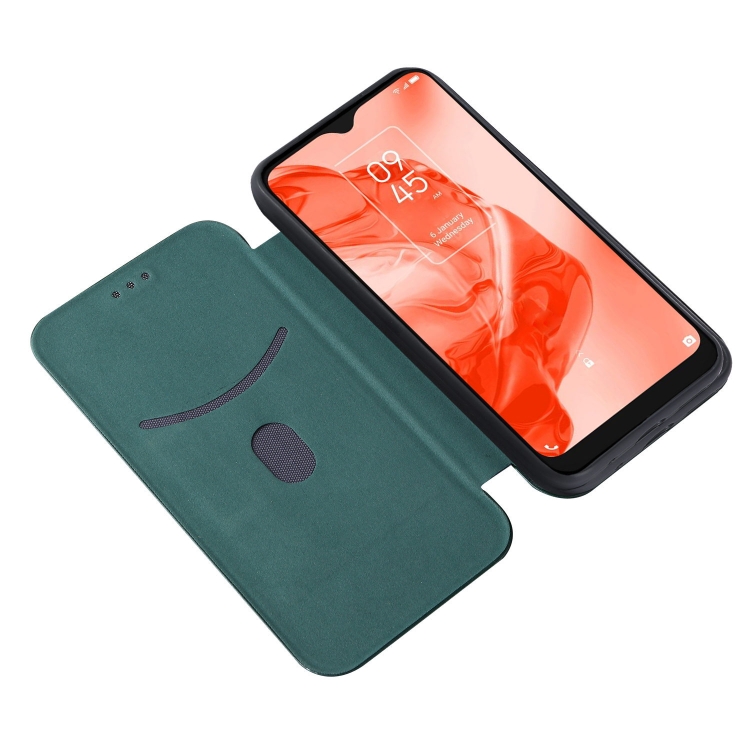Funda Telefónica para TCL 205 Fibra de Carbono Textura Magnética Horizontal Flip (Verde)